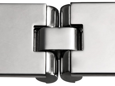 Realizzata in acciaio inox AISI 316 lucidato a specchio. Applicabile per tavoli o portelli con apertura a ribalta. Dotata di cover copriviti applicabile dopo il montaggio per un design pulito e lineare.
