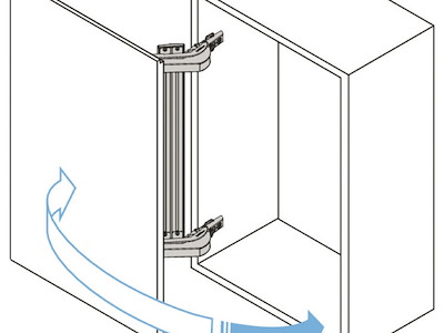 Consente di ruotare lateralmente gli sportelli in un raggio ridotto, ideale per applicazioni con limitato spazio anteriore (quadri elettrici nei corridoi).