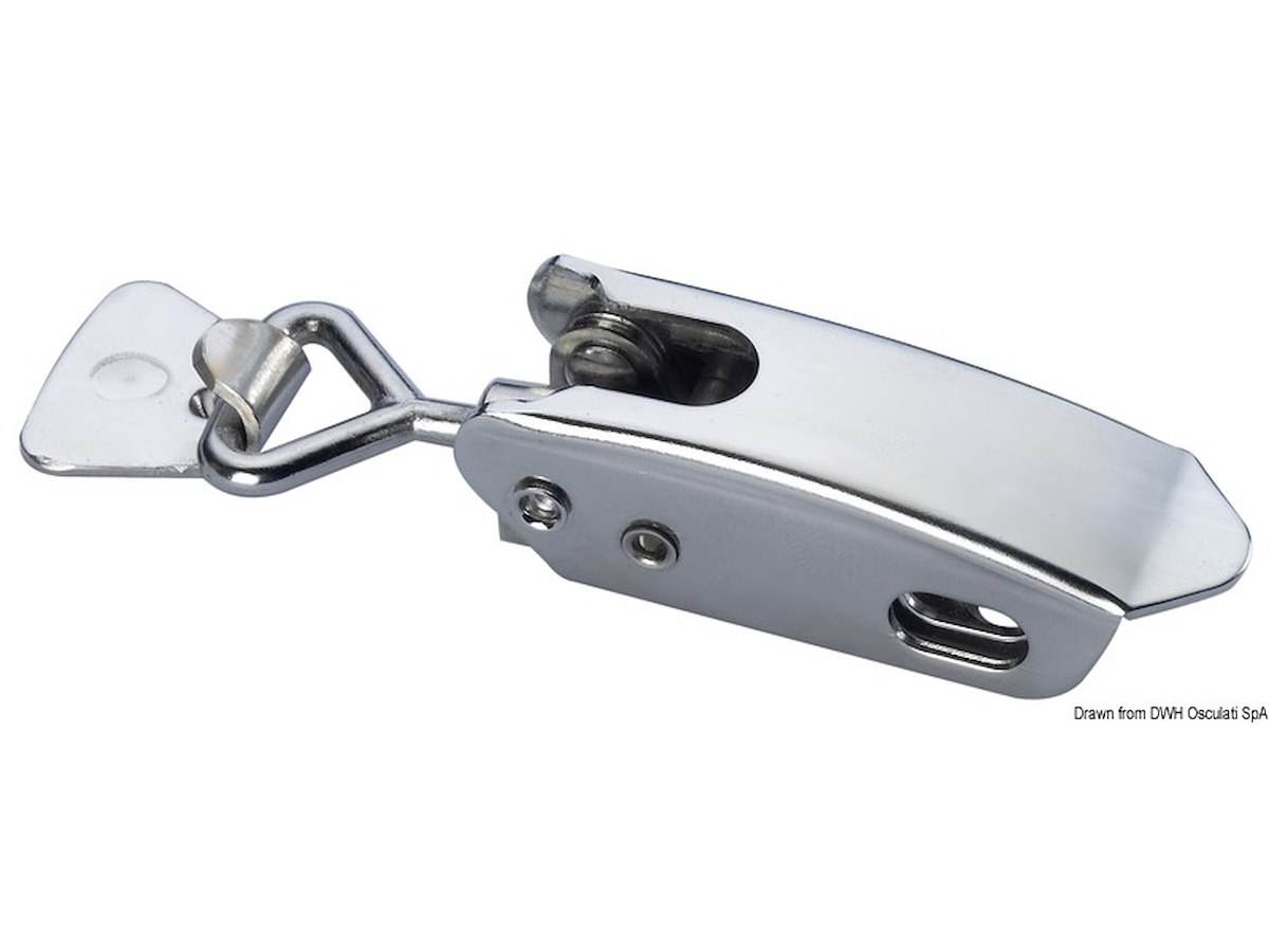 Fabbricate in acciaio inox lucidato è completa di porta-lucchetto e presenta la particolarità di una molla di compensazione interna che elimina qualsiasi possibile vibrazione.