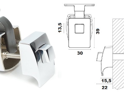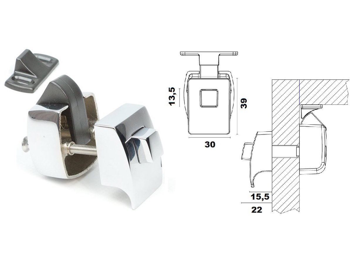 pulsante in ottone cromato completo di chiusura per ante o cassetti, posizione chiusura interna sia sopra che laterale, dimensioni 39x30x22 mm