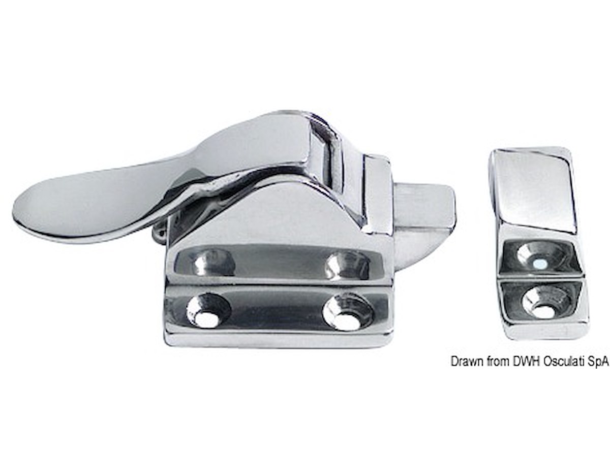 In acciaio inox AISI 316 lucidato a specchio, con maniglietta di apertura, ideale per sportelli di accesso alla plancetta, per gavoni e per frigo/ghiacciaie.