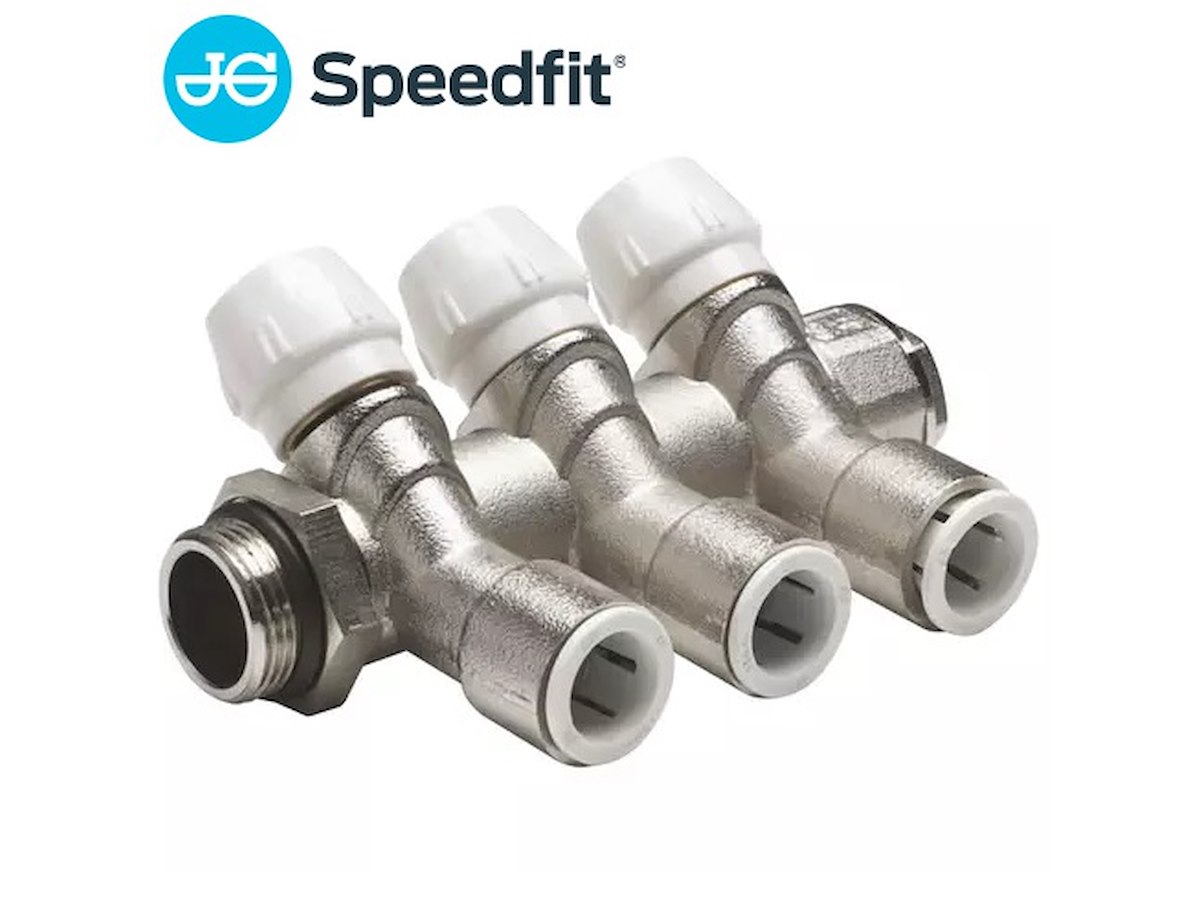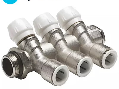 collettore in ottone nichelato per utilizzo con tubo da 15mm, progettato per un utilizzo più veloce rispetto ai metodi tradizionali e più facile da usare in spazi ristretti, made in UK