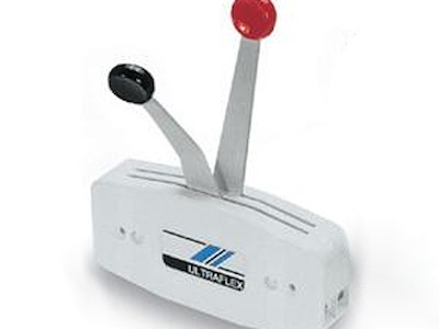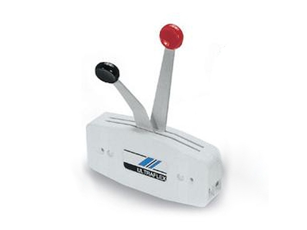 scatola di comando bileva ULTRAFLEX di colore grigio, ad azione singola adatte a qualsiasi tipo di motore fuoribordo, costruite in nylon rinforzato con leve in anticorodal anodizzato