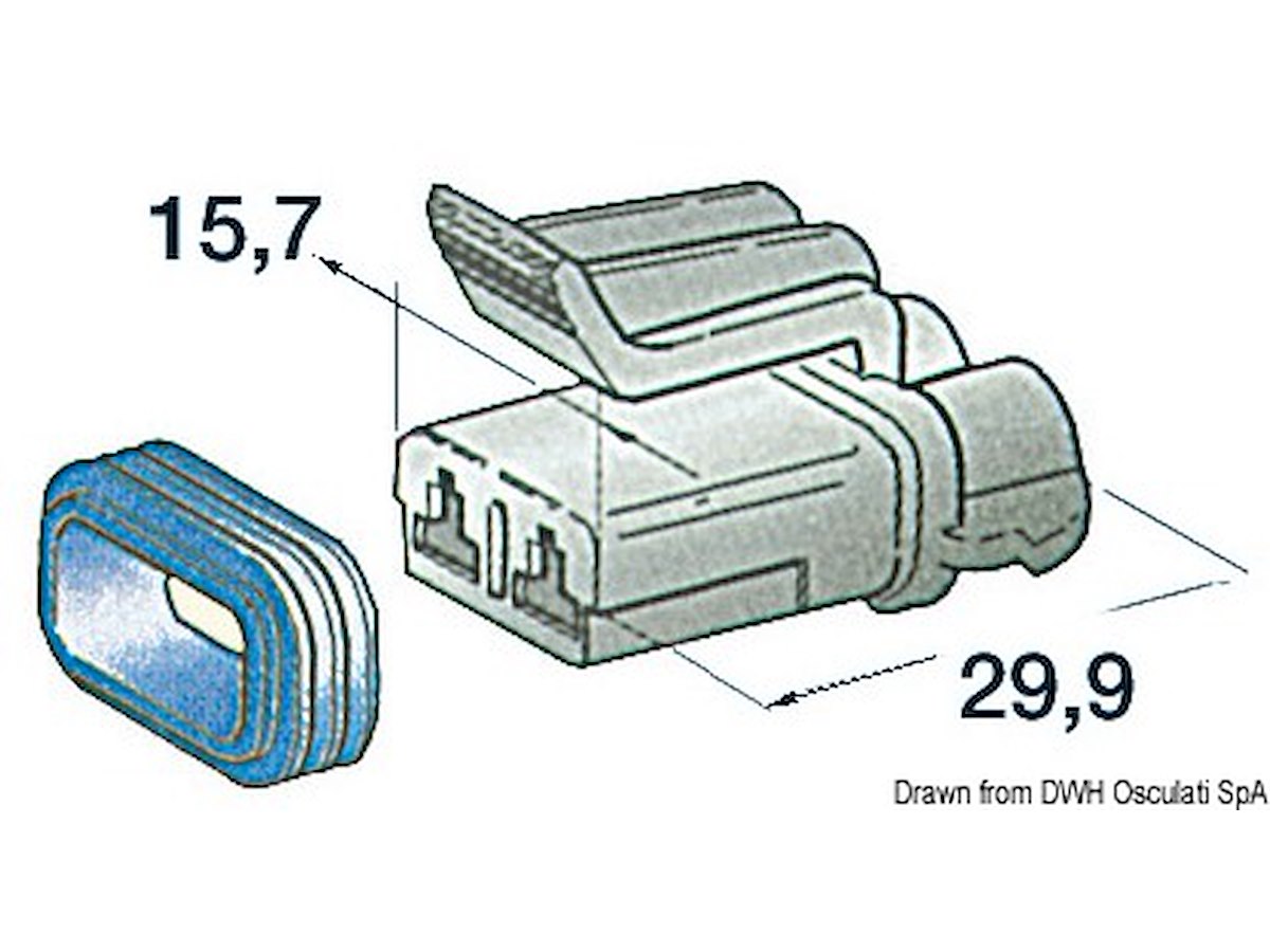 Connettori IP67. Per poter comporre un connettore esempio da N. 2 poli viene formato da: 1x14.235.30 / 1x14.235.40 / 2x14.236.45 / 2x15.236.46 / 4x14.236.48.