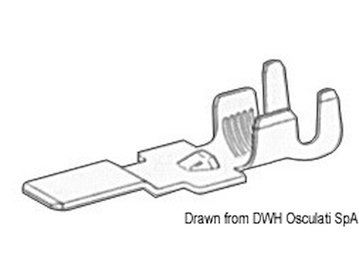Un connettore completo viene formato da: connettore + 2 faston maschi 14.231.20/40 + 2 faston femmina 14.231.0/30 + 4 tasselli con guarnizione della appropriata sezione 14.232.01/02.