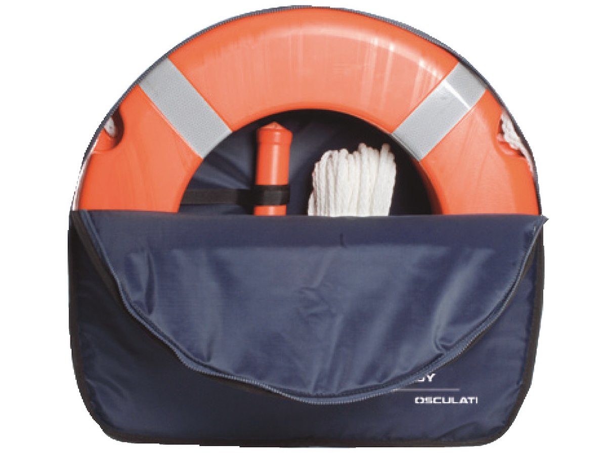 In tessuto spalmato in poliuretano a doppio strato imbottito. Completo di cinghie regolabili per fissaggio al pulpito. Apertura con cerniera. Cinghie per contenere boetta luminosa (30.584/583.00) + la cima regolamentare 22.408.06.