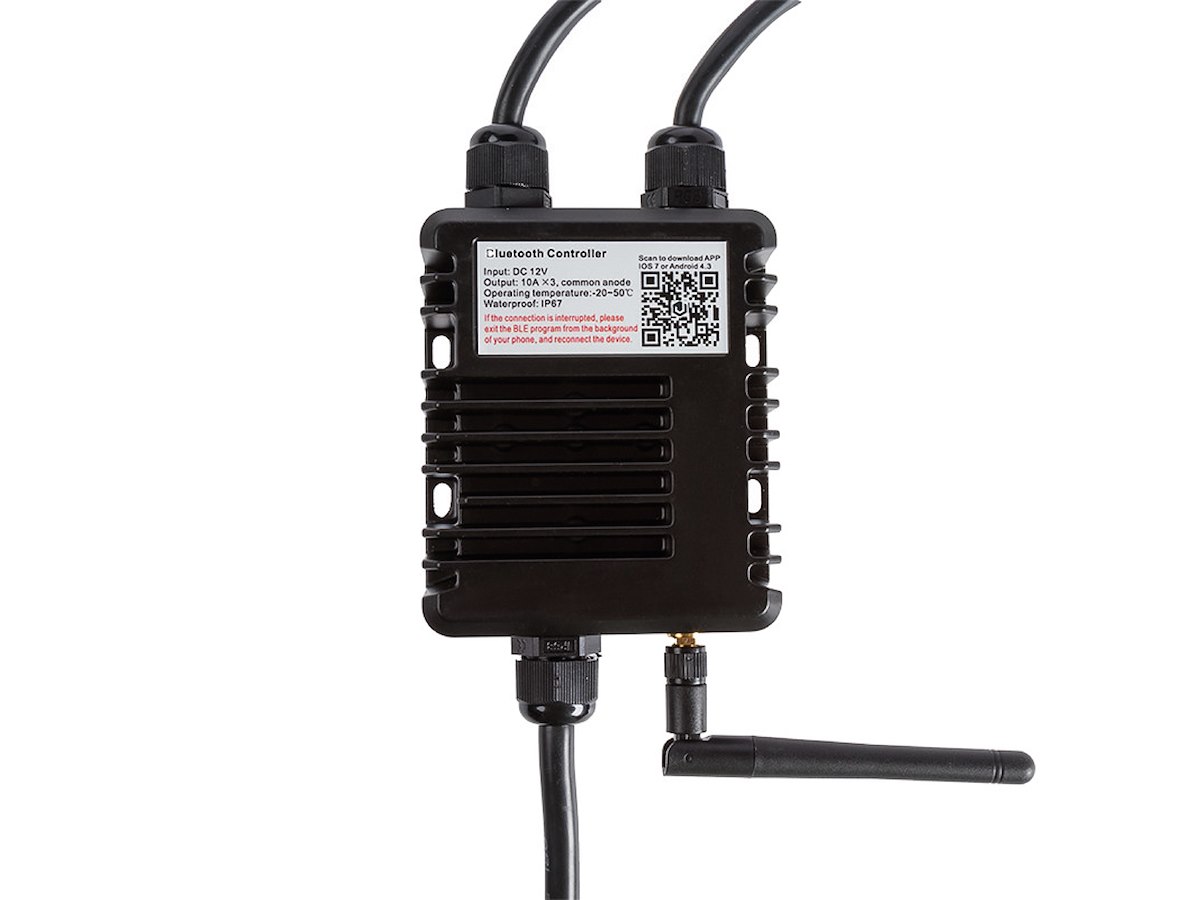 Il controller 13.237.50 permette di selezionare e mixare i 3 colori base rosso/verde/blu, ottenendo varie tinte ed in più il colore bianco, inoltre consente di ritmare la luce seguendo la musica di bordo via bluetooth.