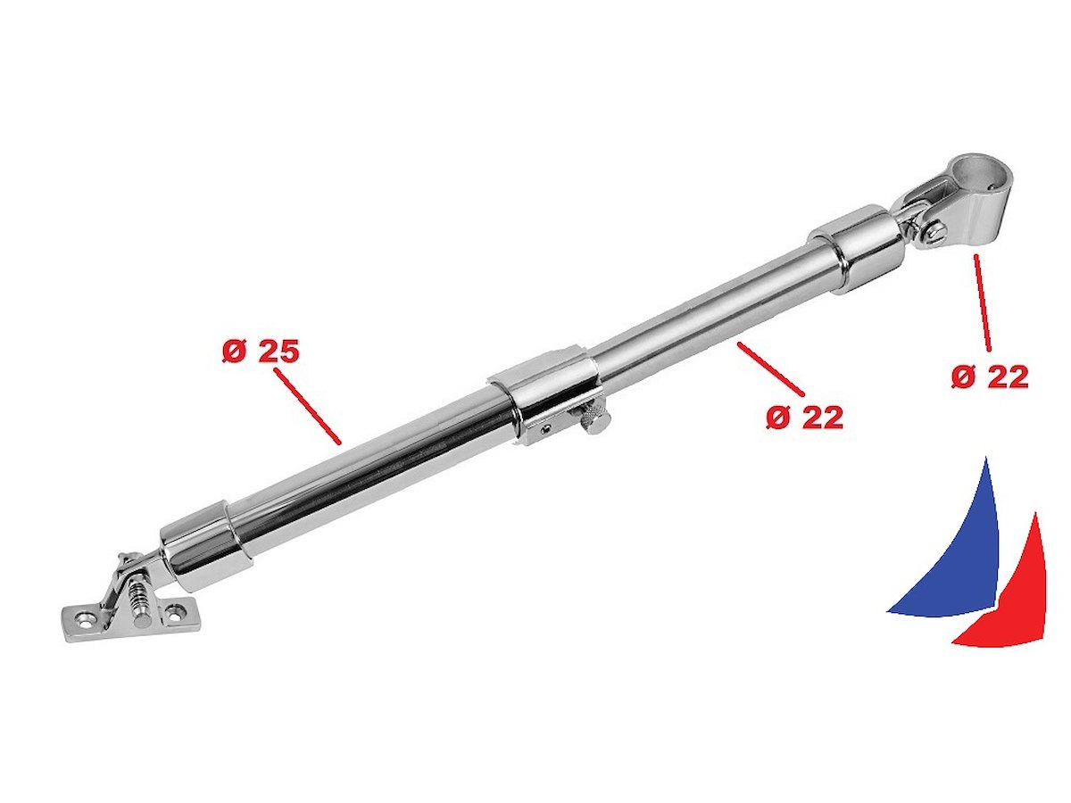 coppia di supporti telescopici in acciaio inox Aisi 316 per tendalini, kit completo di basi e supporti per tubo lato tendalino Ø22 mm