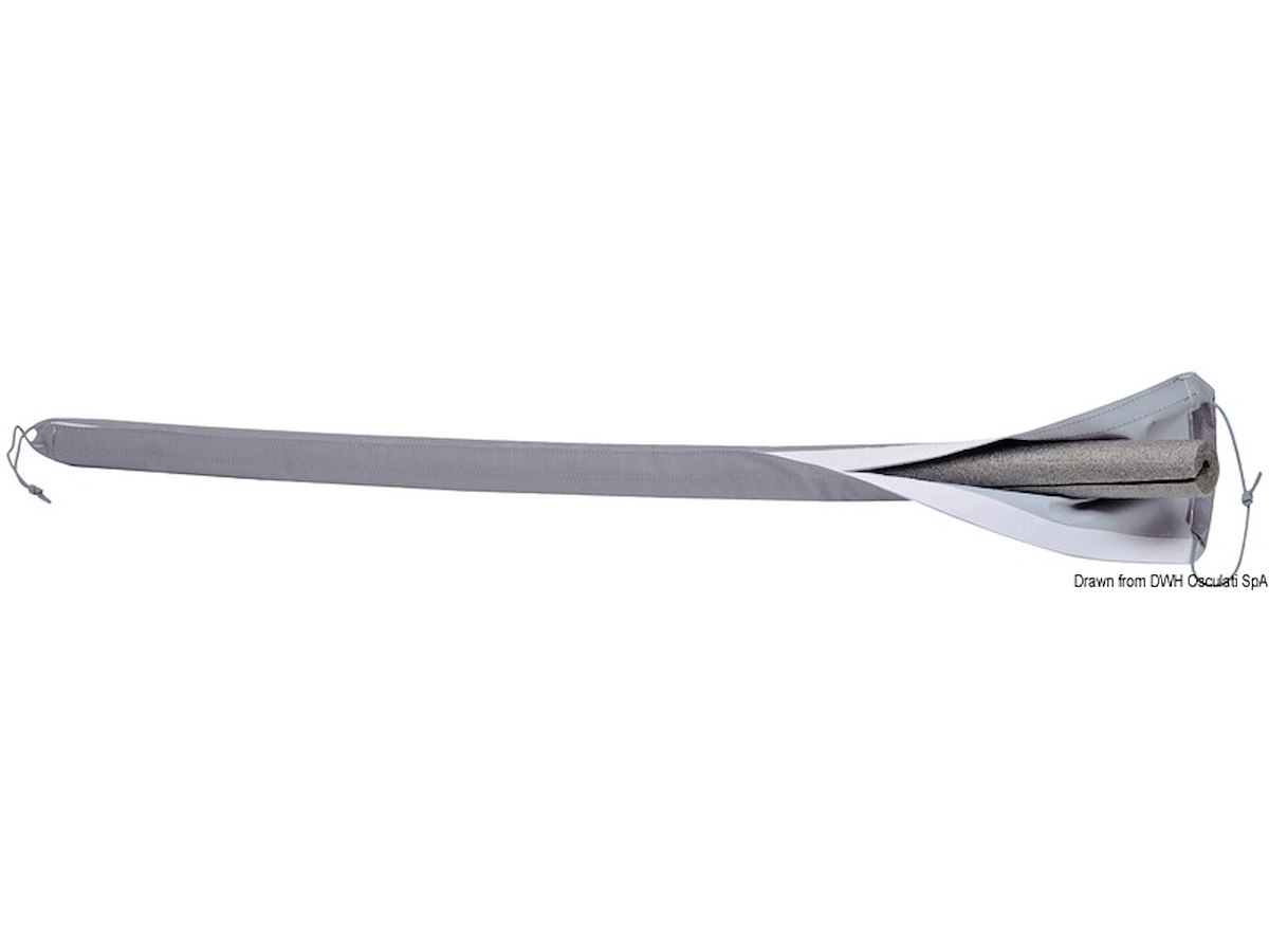 In poliuretano espanso morbido a cellule chiuse rivestite in tessuto di poliestere “cordura”. Tramite un ingegnoso sistema si applicano alle draglie senza smontarle e si conformano perfettamente alle stesse senza antiestetici giochi. Universale per draglie di qualsiasi diametro. Possono coprire anche il tenditore.