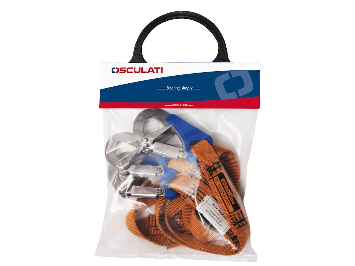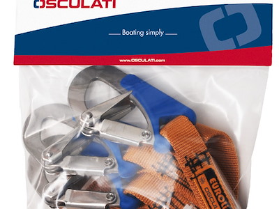 N. moschettoni: 2 + 1 centrale Moschettoni INOX tipo: Apertura rapida di sicurezza e anti-appigli Lunghezza m: 2 Approvazione CE: Reg. (EU) 2016/425 - UNI EN ISO 12401:2009
