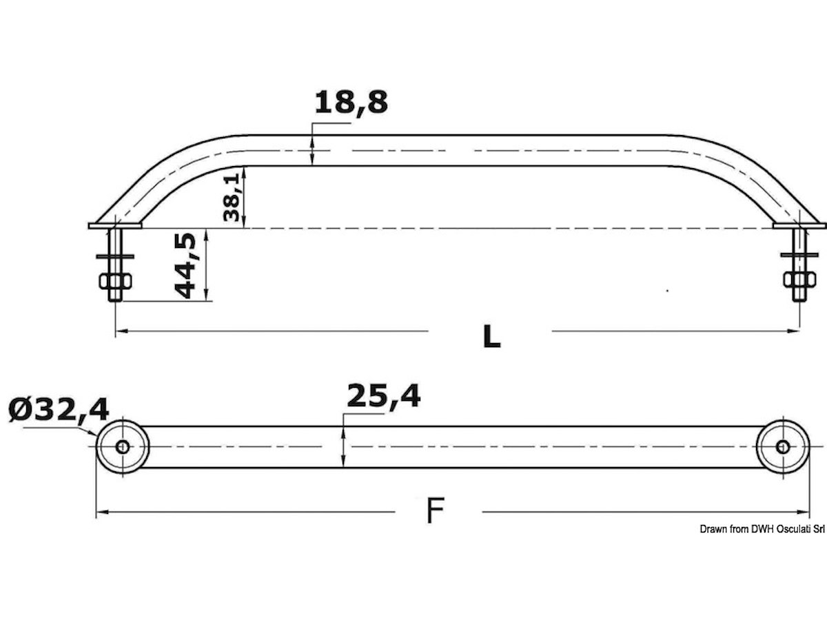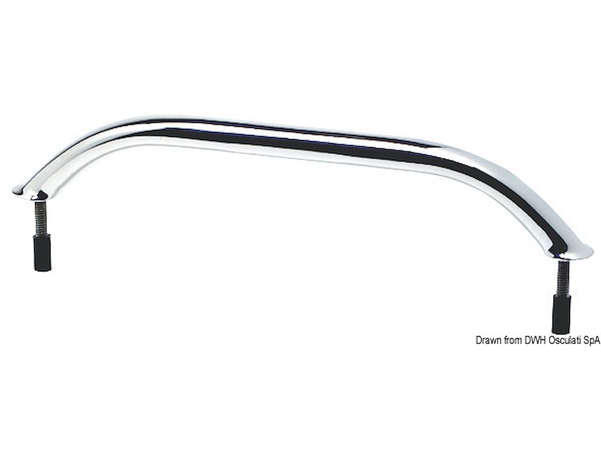 In acciaio inox lucidato a specchio. 19x25 mm, fissaggio con 2 o 3 prigionieri Ø 5/16 mm.