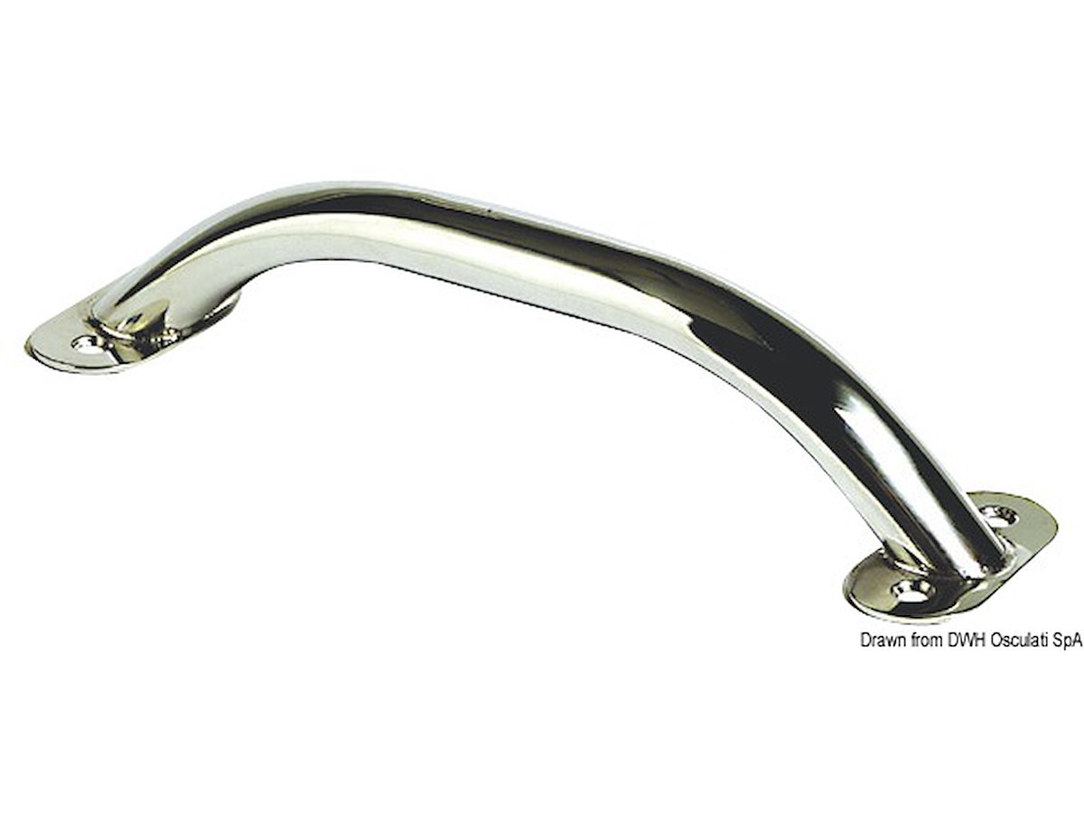 In acciaio inox lucidato a specchio , sezione19x25 mm, fissaggio esterno con viti .