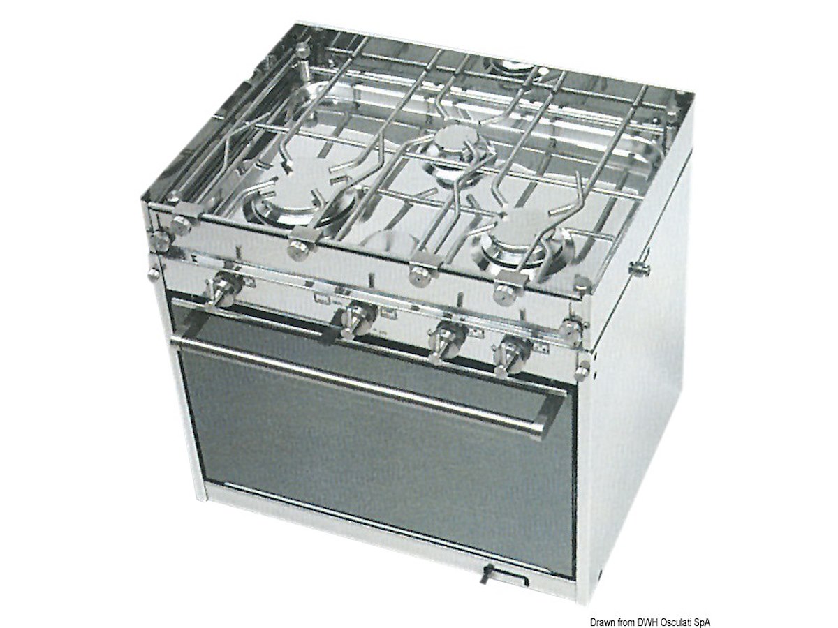 Caratteristiche: struttura in acciaio inox estremamente robusta; bloccapentole in acciaio inox massicci regolabili sia in larghezza che altezza; parafiamma laterali esportabili per una facile pulizia; cardano con sistema brevettato di regolazione; accensione pizoelettrica autonoma con pile AA.