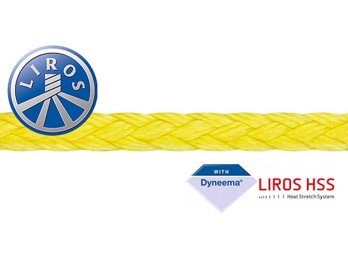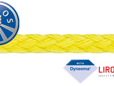 Liros Dyneema cerato SK78, sviluppata per applicazioni estreme, alta resistenza all'abrasione e nessun assorbimento d'acqua. Allungamento sotto carico <1%, carico di rottura più alto di un cavo di acciaio di pari diametro, colore GIALLO