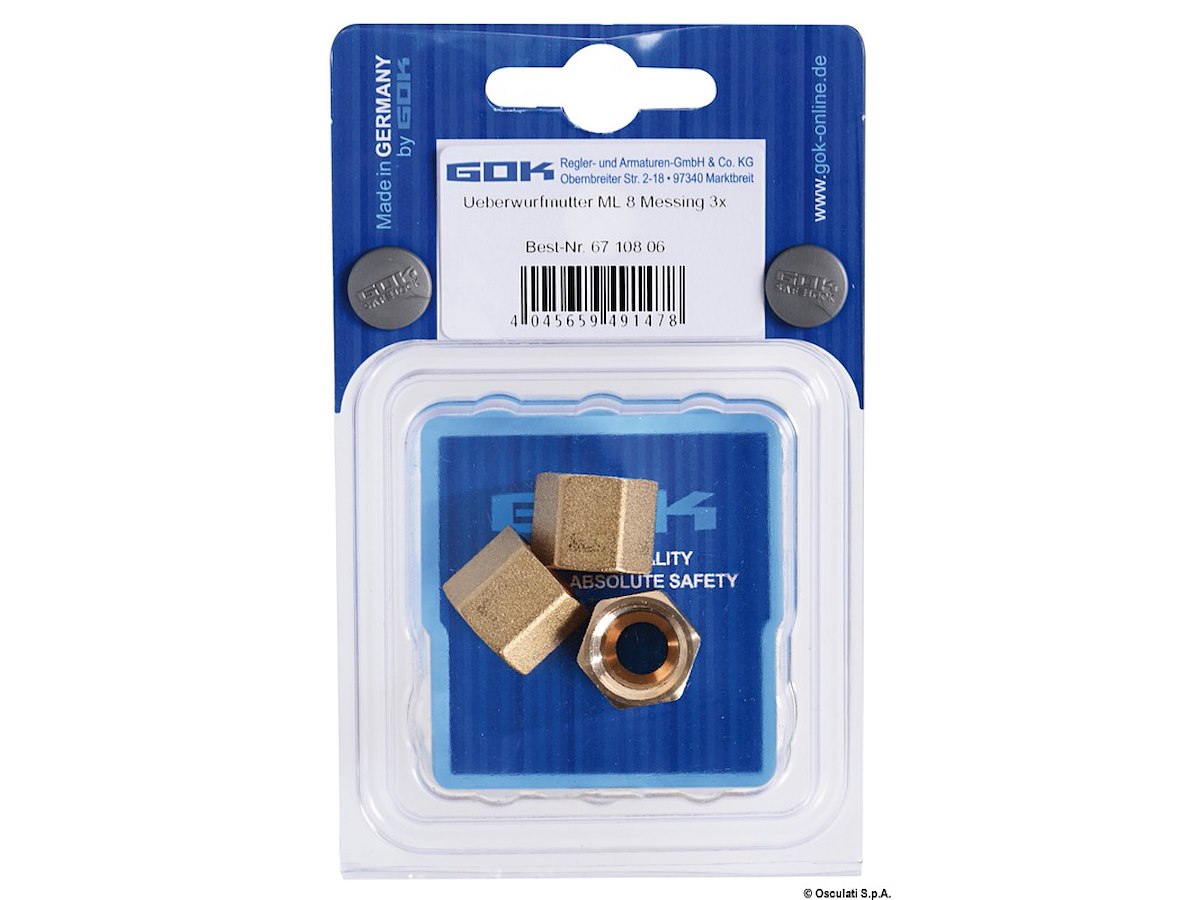 Dado in ottone tubo rame da 8 mm (blister 3 pz)