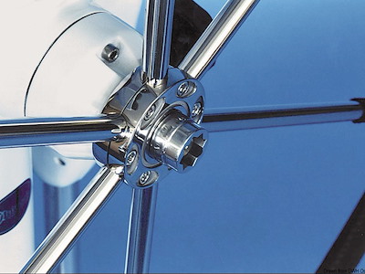 Permette di rimuovere rapidamente la ruota dalla colonnina con la sola azione di una manovella winch. Realizzato in acciaio inox 316 lucidato a specchio, a richiesta è disponibile anche nelle versioni per ruota Mini Maxi e Fastnet.