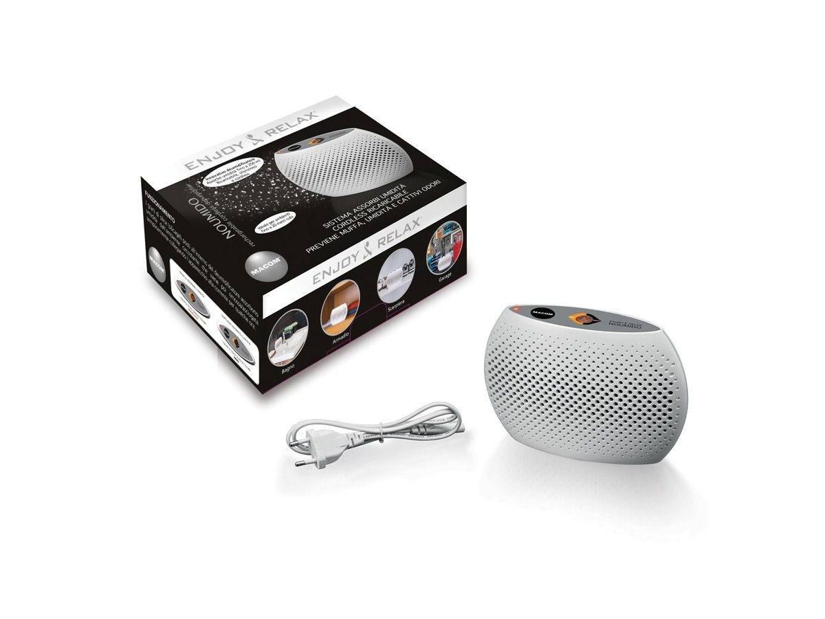 Il mini deumidificatore NOUMIDO previene umidità, muffa e allontana i cattivi odori.I grani di silice (silicagel) posti all’interno assorbono umidità dall’ambiente circostante che viene poi rimossa/asciugata semplicemente collegando l’apparecchio alla corrente per qualche ora. Ricaricabile, silenzioso e portatile. CONTENUTO CONFEZIONE: Deumidificatore + Cavo per ricarica + Libretto istruzioni