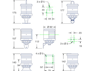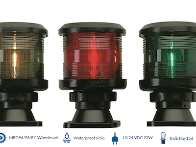 fanali di navigazione 360° esterno nero, originali DHR, omologati RINA per scafi da 12 a 20m, dimensioni 95z139H mm