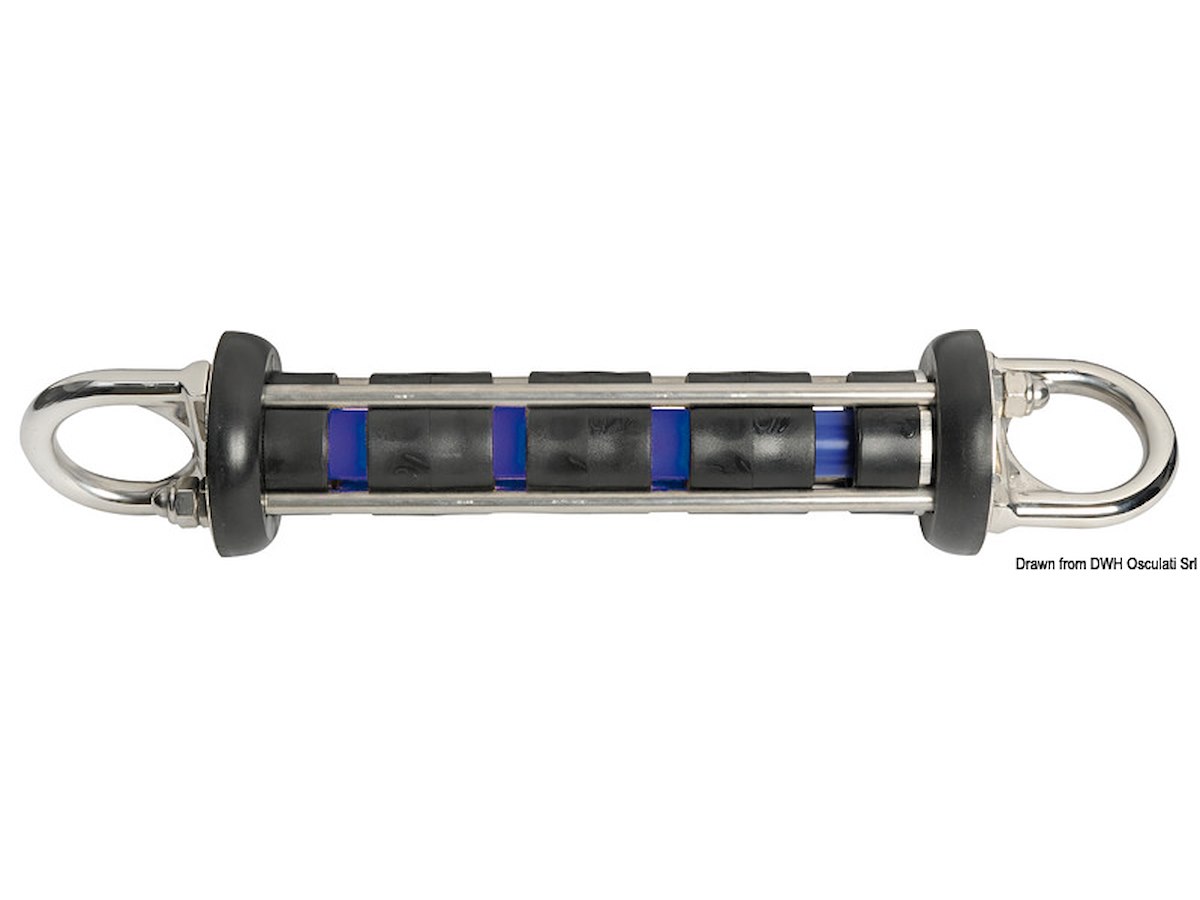 Per barche da tonnellate: 9-13 peso : 2,3 Carico di rottura kg: 15.000 Corsa mm: 120 Capacità elastica kg: 250
