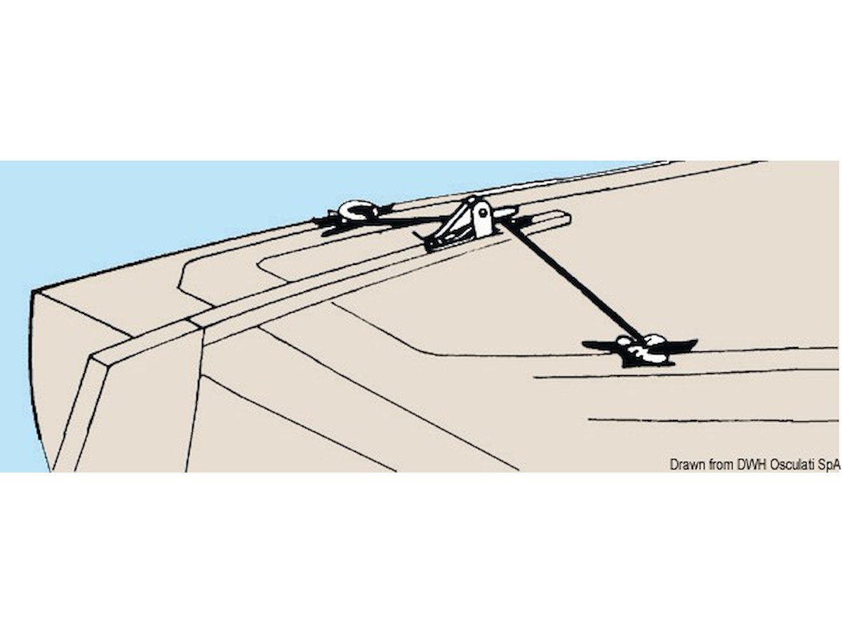 Realizzato in alluminio anodizzato e acciaio inox. Si applica sotto o sopra la barra del timone e permette di strozzare una cimetta piazzata di traverso al pozzetto. E' un economico surrogato del pilota automatico.