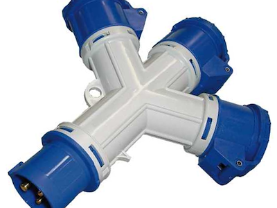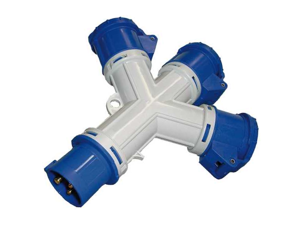 distributore a 3 prese CEE anche per uso all'aperto IP67, protezione stagna contro la polvere e l‘acqua.