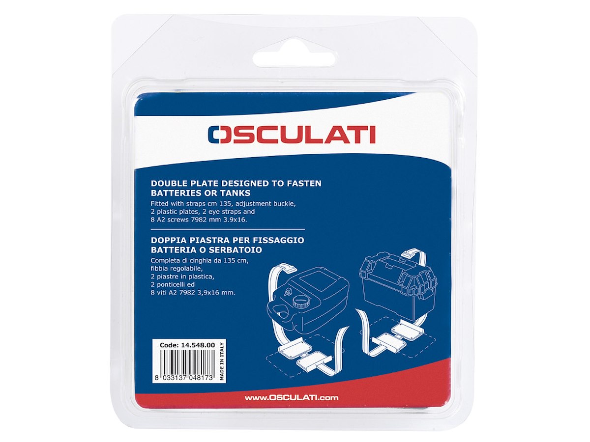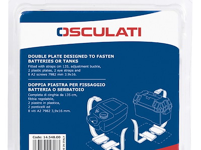 Completa di cinghia da 135 cm, fibbia regolabile, 2 piastre in plastica, 2 ponticelli ed 8 viti A2 7982 3,9x16 mm.