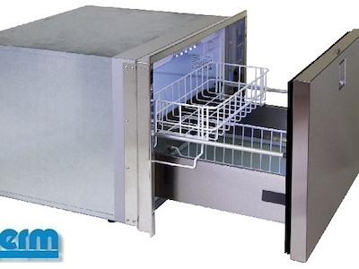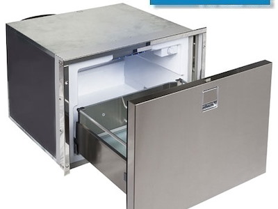 è la soluzione premium con cassetti ad apertura frontale e porta in acciaio inossidabile appositamente trattata per non lasciare impronte. Questo nuovo materiale combina un design nautico all’avanguardia con una facile pulizia e manutenzione del frigorifero. È dotato di un robusto meccanismo di scorrimento del cassetto, 5 luci LED blu e cestelli interni, per garantire un maggiore comfort di utilizzo. La flangia in acciaio inossidabile su 3 lati facilita l'incasso nel mobile, così come il compressore remoto ne facilita il posizionamento fino a 1,1 metri di distanza dal cabinet. È disponibile in tre versioni diverse, come frigorifero (DC), congelatore (DC) e congelatore con Ice Maker integrato (AC). frigo e freezer da 70lt, versione con ice-maker da 60lt