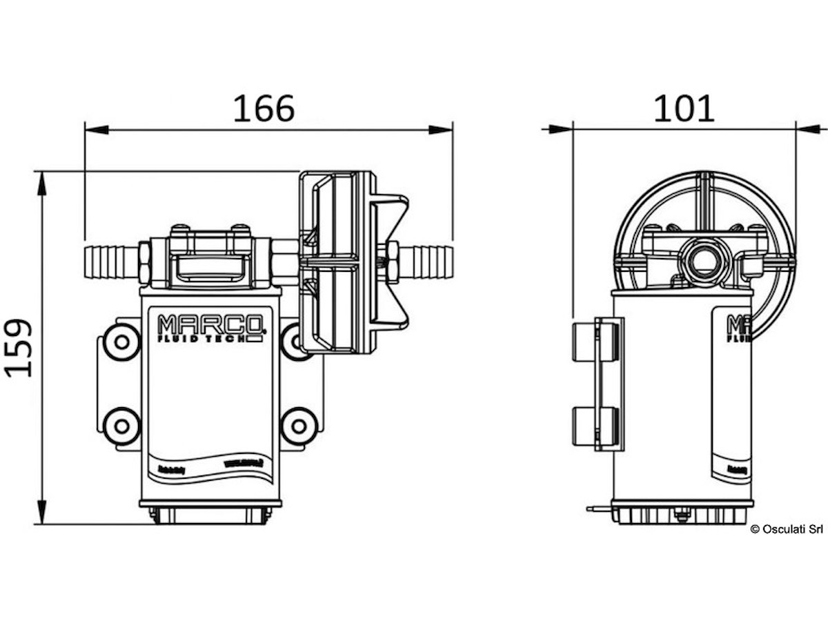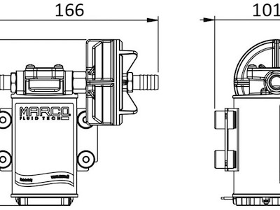 Sigla: UP3 V: 12 Portata l/min: 15 Prevalenza m: 10 Consumo A: 6 Apirazione da m: 1,5 Bocche: 3/8"
