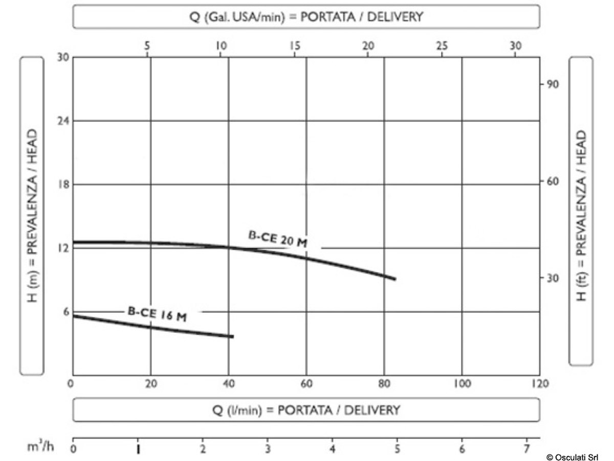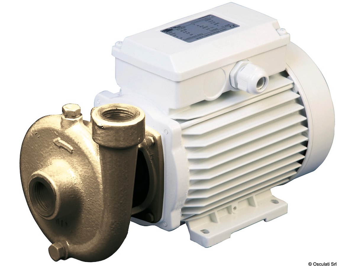 Elettropompa a corrente alternata monofase (50Hz), largamente impiegata a bordo per fornire l'acqua, dolce o salata, necessaria al funzionamento degli impianti di aria condizionata. Costituita da corpo pompa e girante in bronzo, e albero in acciaio inox AISI 316.