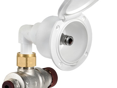 Per l'utilizzo dell'acqua di banchina, questo sistema innovativo riduce stabilmente la pressione a 3 bar, proteggendo le tubazioni da eventuali danni. Il dispositivo, compatto e dotato di regolatore di pressione e valvola di non ritorno in ottone orientabili, garantisce un flusso sicuro e costante. Il tubo per acqua di banchina si collega facilmente grazie al raccordo a scatto tipo giardinaggio (codice 36.189.02). Il filetto di uscita è 3/4" BSP. Anche se l'impianto resta collegato alla banchina, la pressione viene mantenuta stabile a 3 bar, indipendentemente dalla pressione della rete di approvvigionamento