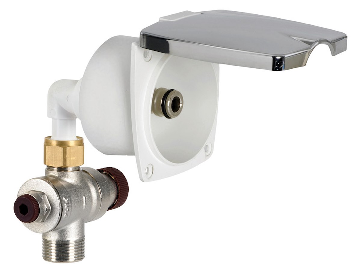 Per l'utilizzo dell'acqua di banchina, questo sistema innovativo riduce stabilmente la pressione a 3 bar, proteggendo le tubazioni da eventuali danni. Il dispositivo, compatto e dotato di regolatore di pressione e valvola di non ritorno in ottone orientabili, garantisce un flusso sicuro e costante. Il tubo per acqua di banchina si collega facilmente grazie al raccordo a scatto tipo giardinaggio (codice 36.189.02). Il filetto di uscita è 3/4" BSP. Anche se l'impianto resta collegato alla banchina, la pressione viene mantenuta stabile a 3 bar, indipendentemente dalla pressione della rete di approvvigionamento