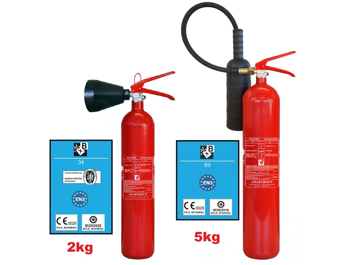 estintori a biossido di carbonio omologati MED, certificati EN3 e marchio CE, idonei per nautica per uso interno su apparati elettrici (diporto+mercantile)