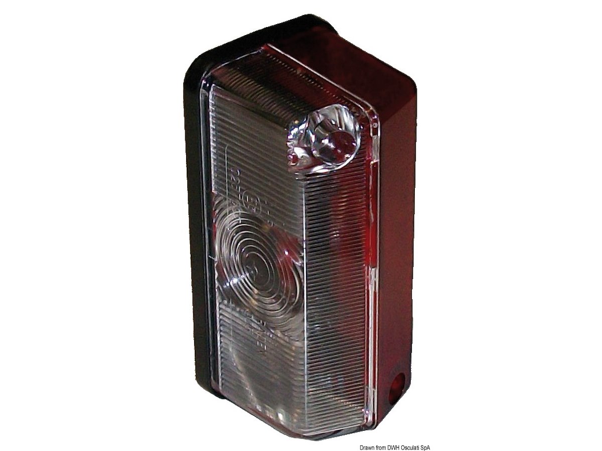 Descrizione: Fanale laterale d"ingombro base piana misure mm: 90x40x40 Colori: COLORE_bianco_rosso_pieno Bianco/Rosso