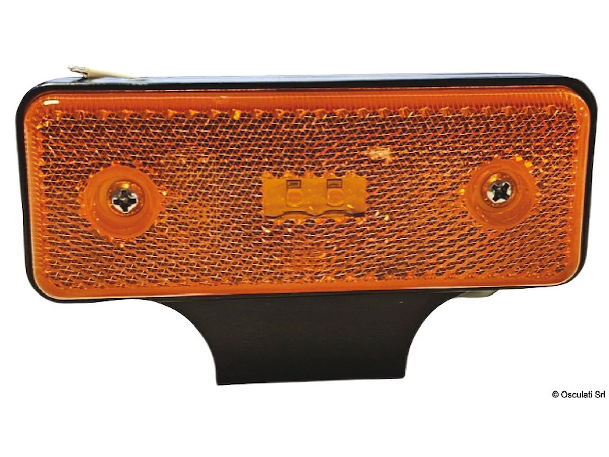 V: 12/24 Descrizione: Fanale laterale posteriore misure mm: 110x42x9 Colore: COLORE_arancio_pieno Catadiottro arancione Interasse fori mm: 74