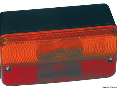 Descrizione: Fanale posteriore DX Funzione: N.5 : Posizione / Stop / Direzione / Retronebbia / Luce targa Lampadine (non fornite): 4 (2 lampadina 21W BA15S + 1 lampadina 5-21W BAY15D + 1 lampadina 5W BA15S) misure mm: 190x100