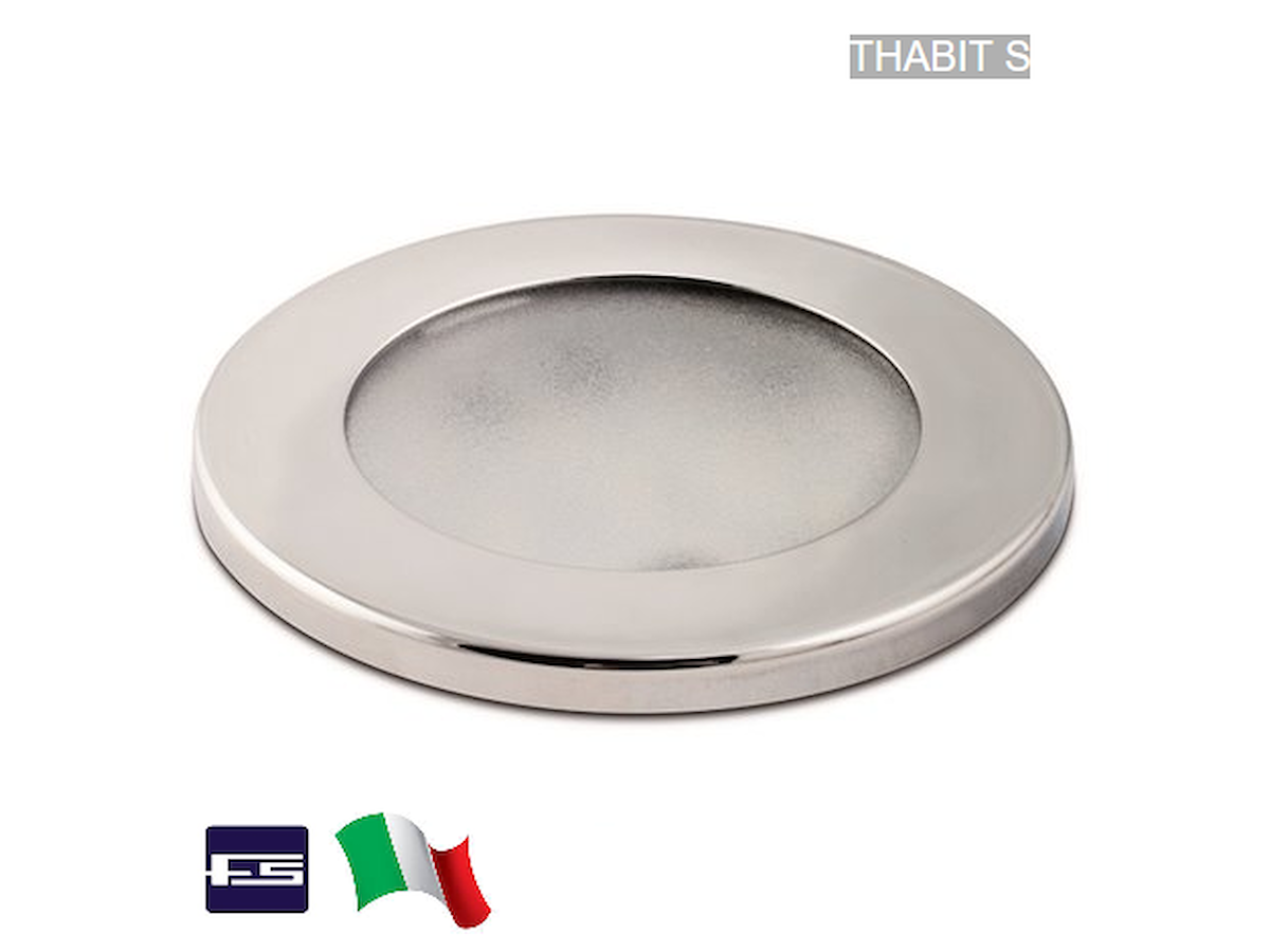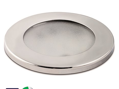 Spot per esterni IP65 con corpo in policarbonato, ghiere in acciaio inox lucidato, possibilità di fissaggio sia per mezzo di viti o molle di fissaggio già applicate, 10/30V LED 2,5W