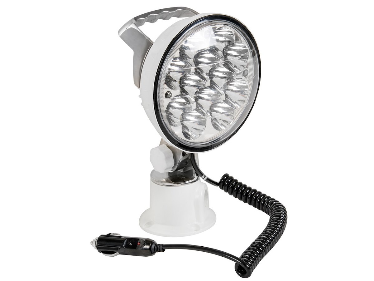 Faro di profondità a LED orientabile con maniglia e snodo ruotabile in acciaio inox lucidate a specchio.
