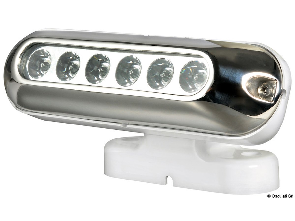 Variante: Supporto + faretto Solo supporto: [13.270.55] Solo faretto: [13.281.05] W: 18 Lumen: 1500 K: 6000 Angolo LED: 10° N. LED: 6 Colore LED: COLORE_bianco_pieno Bianco misure base mm: 120x40