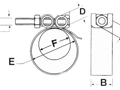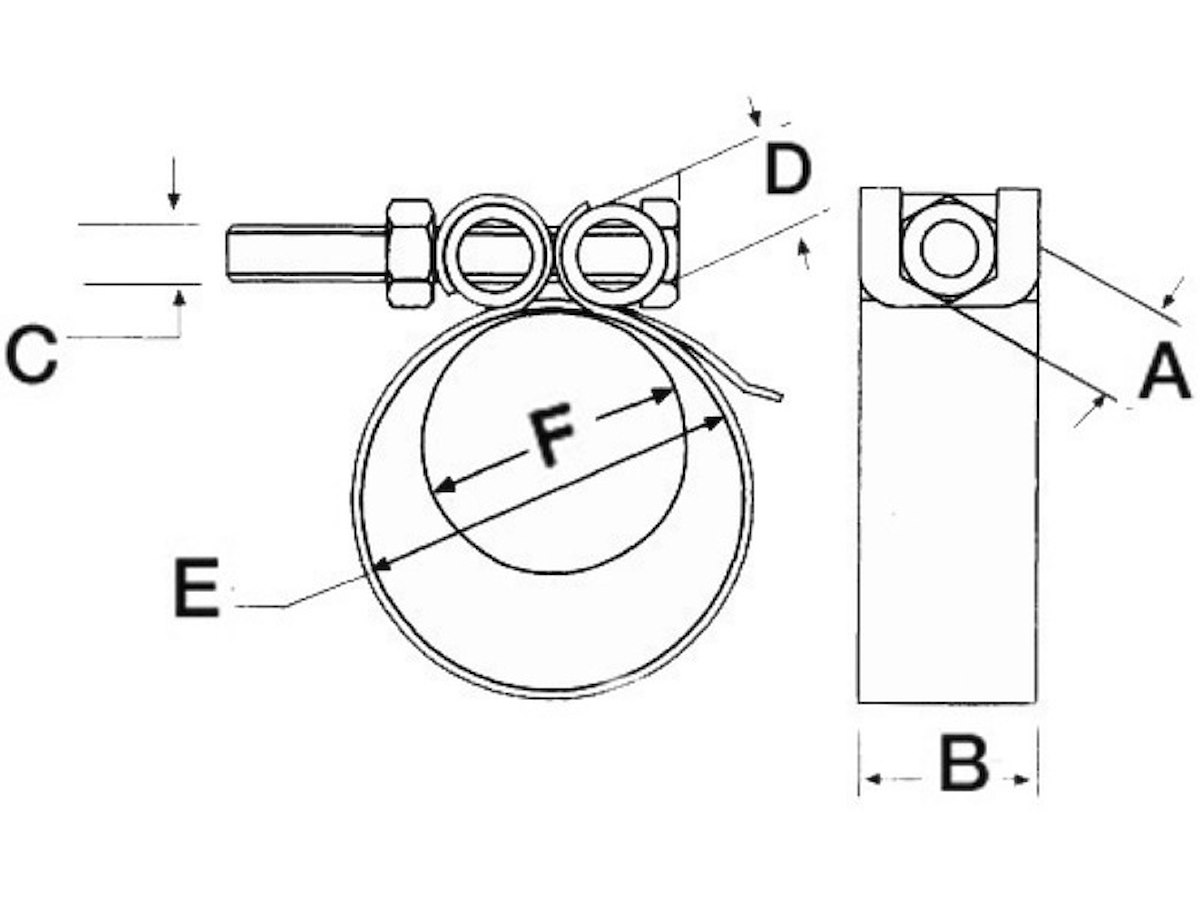 Serraggio mm - F: 41 Serraggio mm - E: 46 Banda mm - B: 19x0,9 Bullone mm - A: 10 Bullone mm - C: M6 Bullone mm - D: 11