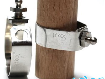 fascette in acciaio inox complete di attacco Loxx maschio, permettono di fissare su tubi i bottoni Tenax e Loxx