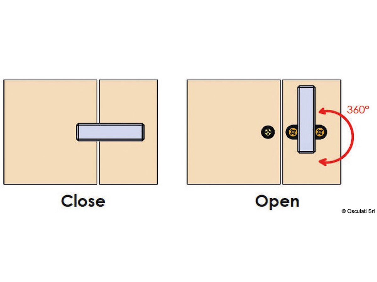 Acciaio inox AISI 316 lucidato a specchio.Evita l'apertura accidentale.In posizione "chiuso" viti invisibili.