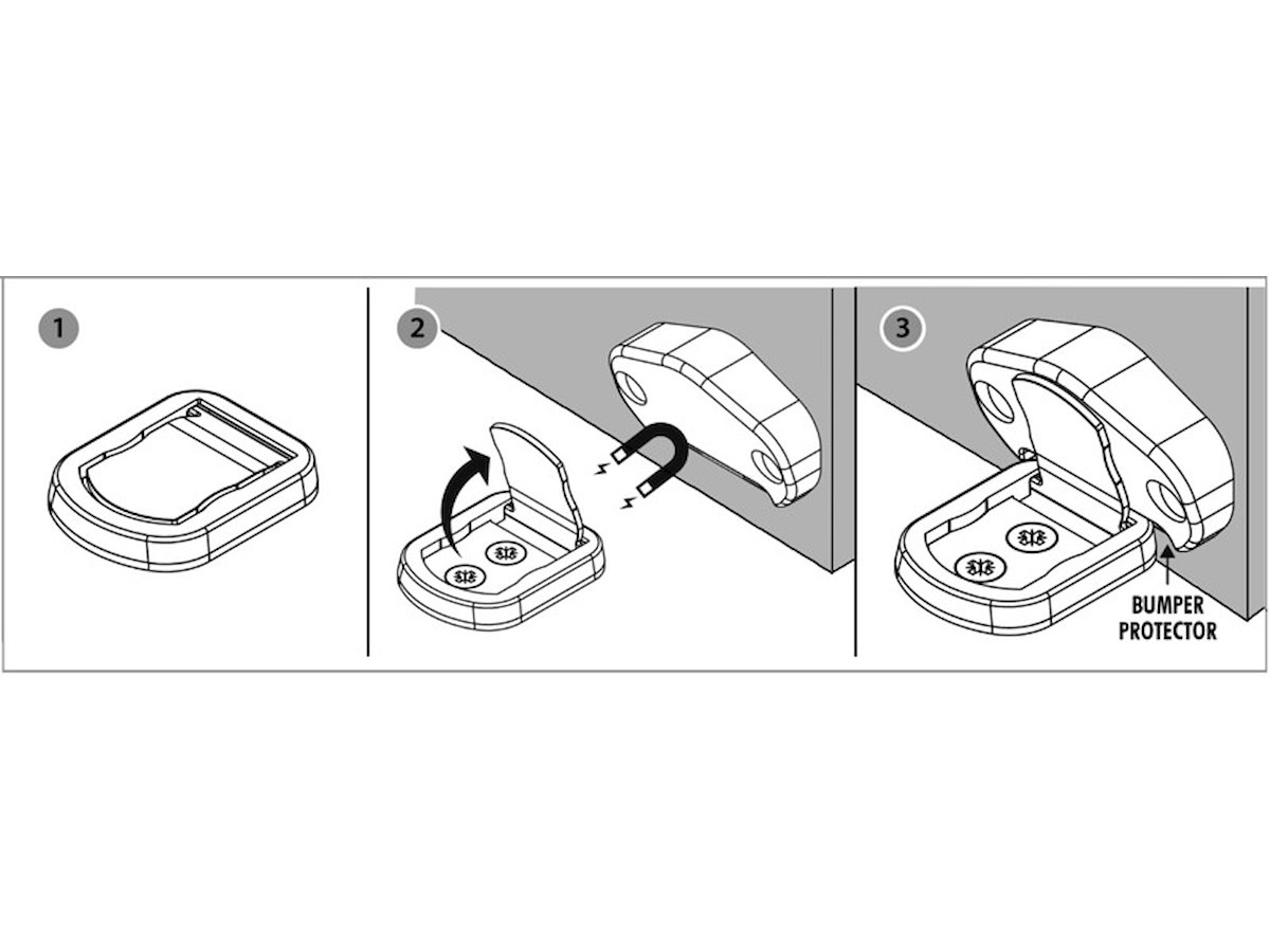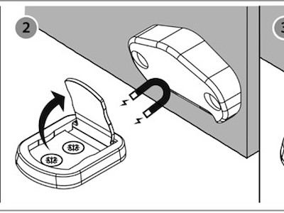 Quando la porta arriva in prossimità della piastrina il magnete la fa sollevare e il blocco entra in funzione.