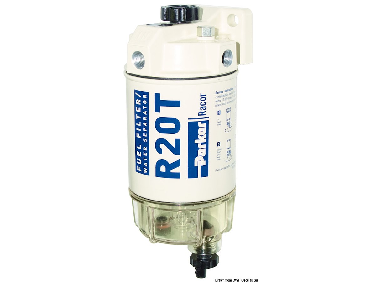 Separatori acqua-carburante, adatti solo per gasolio. Venduti con cartuccia da 10 micron, disponibili cartucce da 30 micron.