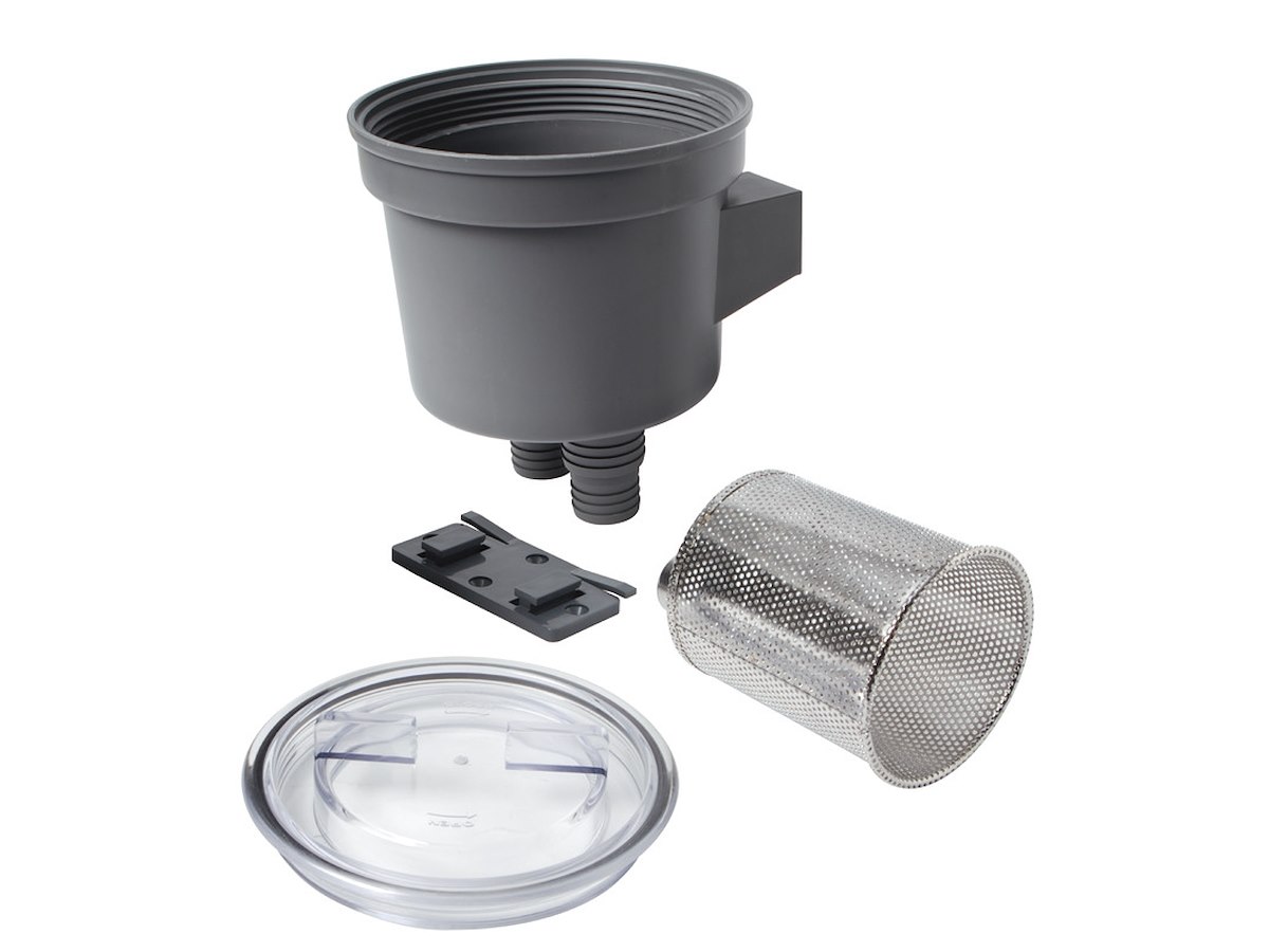 Carcassa in tecnopolimero con coperchio a vite trasparente. Elemento filtrante estraibile in acciaio inox. Il filtro è dotato di un supporto a scatto per poterlo rimuovere facilmente.