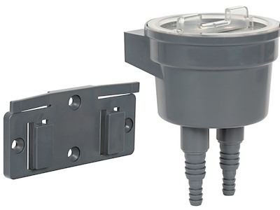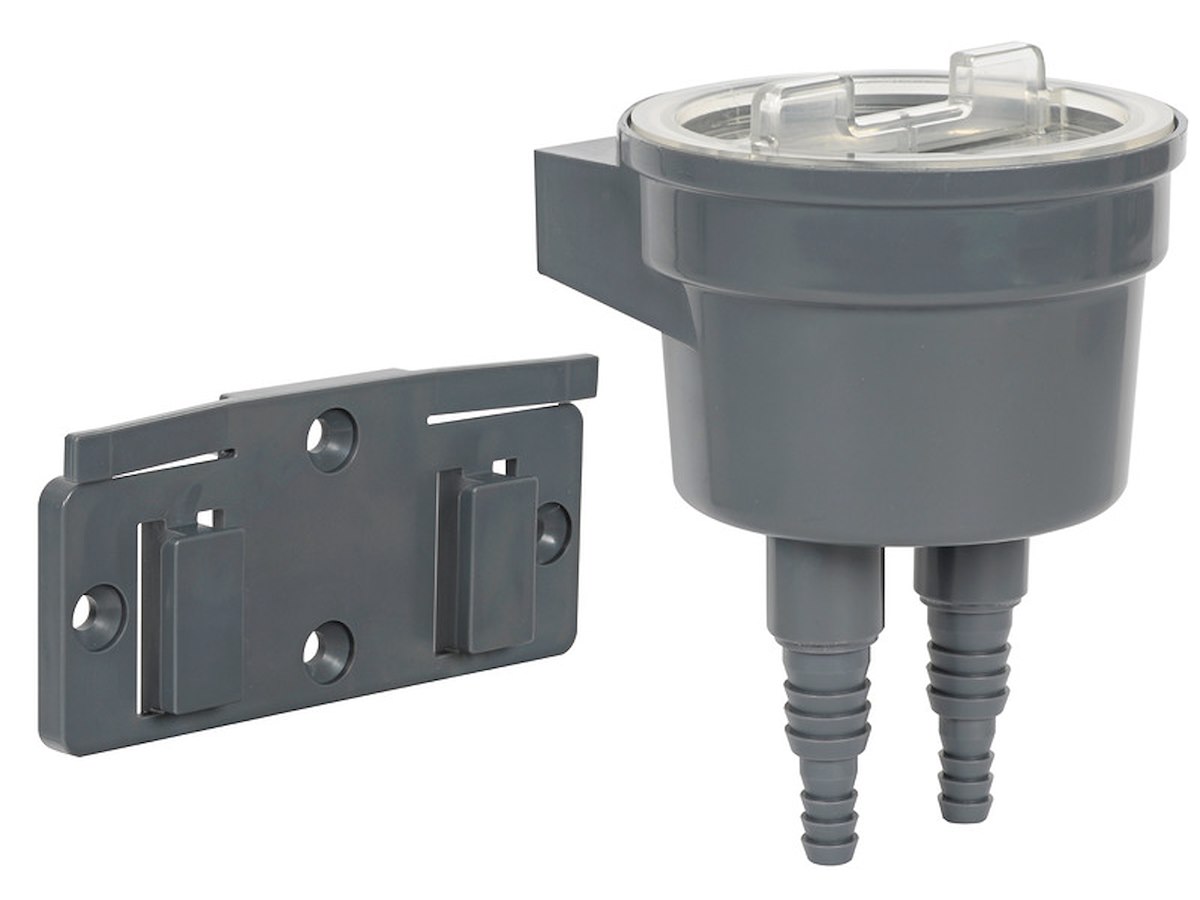 Carcassa in tecnopolimero con coperchio a vite trasparente. Elemento filtrante estraibile in acciaio inox. Il filtro è dotato di un supporto a scatto per poterlo rimuovere con facilità.