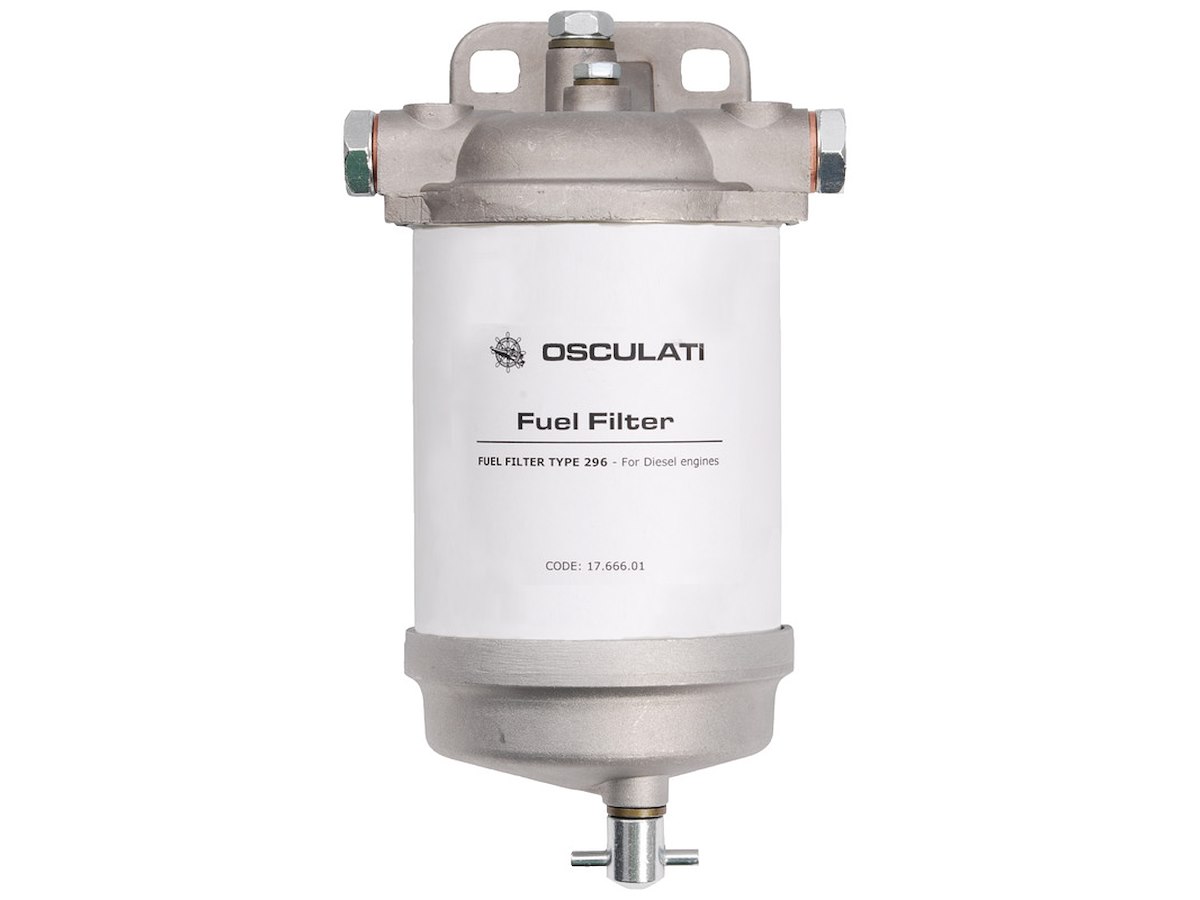 Filtro separatore acqua-carburante. Costruito in accordo con norma ISO 10088. Testa + vaschetta con scarico acqua fabbricati in alluminio.