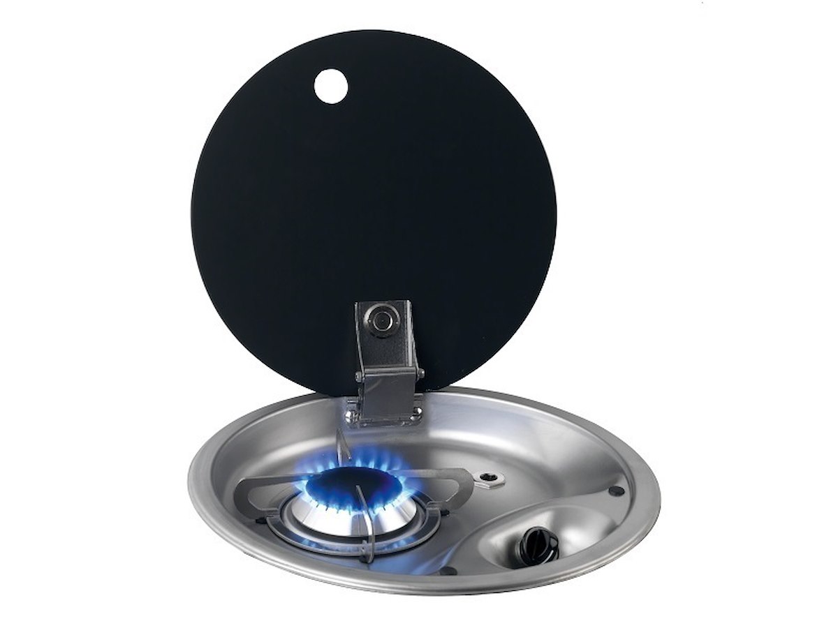 fornello inox rotondo Ø340mm, 1 fuoco ad incasso 1750W con coperchio fumè, completo di griglia di supporto
