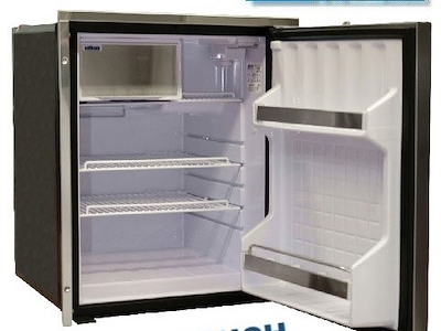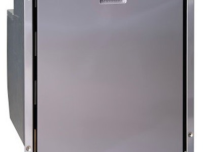 frigoriferi con frontale inox con pellicola antiimpronta, completo di flangia per installazione a incasso con porta a filo flangia e chiusura con maniglia di sicurezza, compressore SECOP 12/24V, luce interna a LED (42lt compressore remotizzabile)