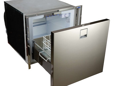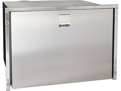 Serie frigo/congelatore a cassetto con apertura frontale e battuta in acciaio inox. Completi di compressore Secop a voltaggio universale 12/24 V.