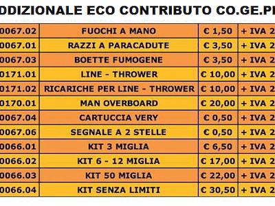 kit completi di fuochi in valigetta: comprendono fuochi a mano, boette fumogene e razzi a paracadute nelle quantità indicate in tabella, in accordo alla normativa vigente, ATTENZIONE: prezzi di listino soggetti a eco-contributo COGEPIR
